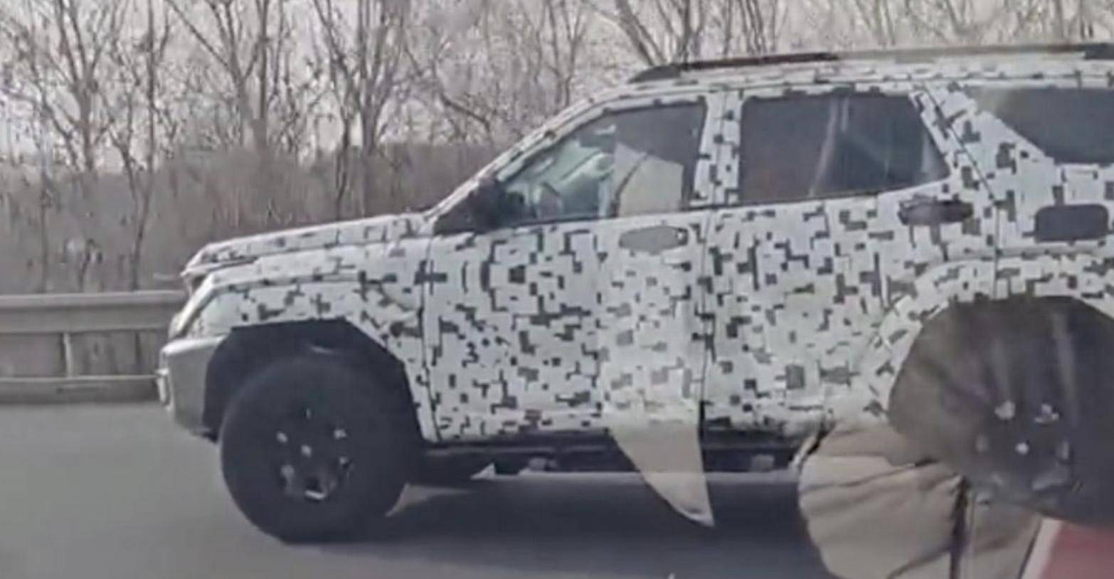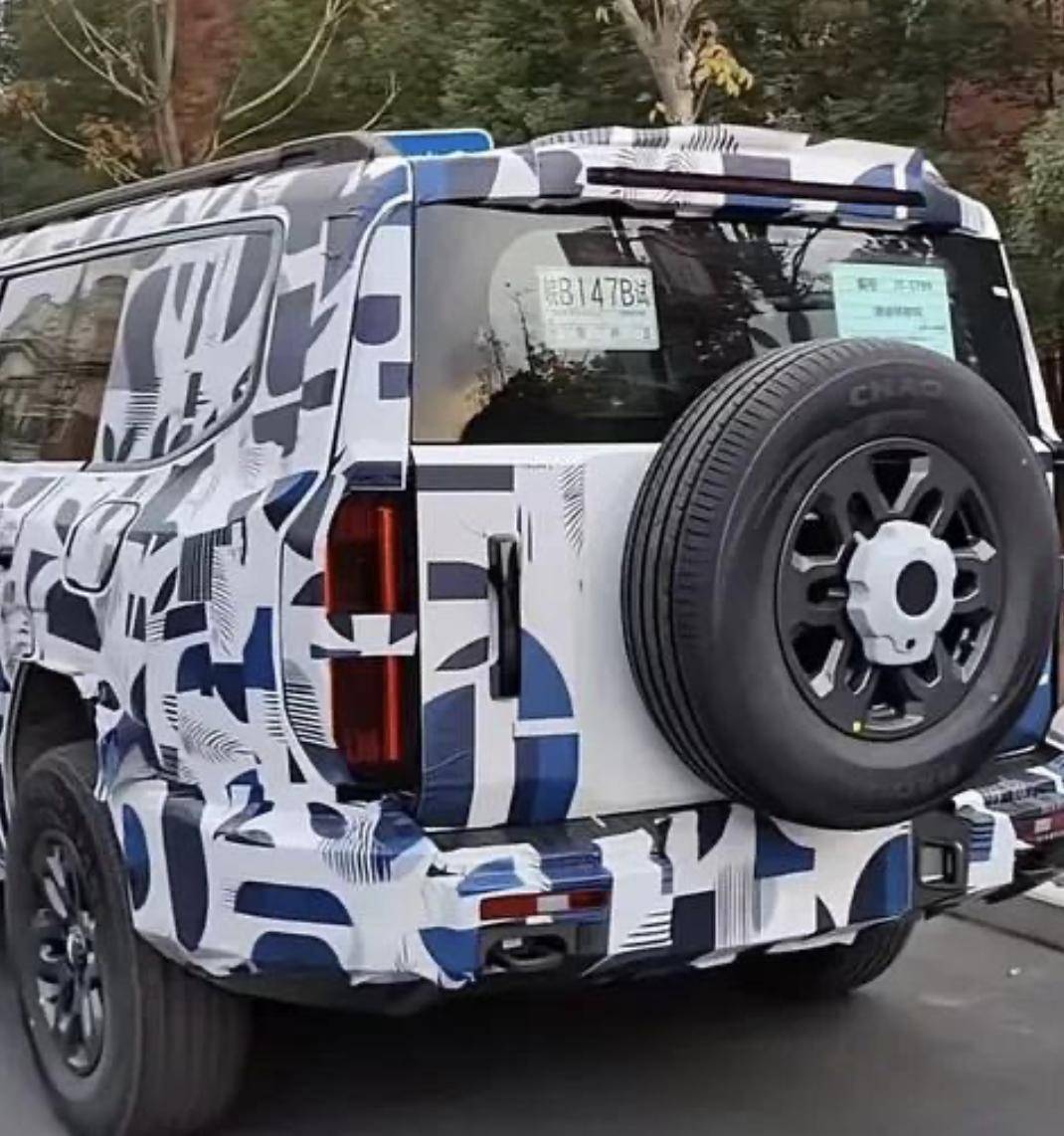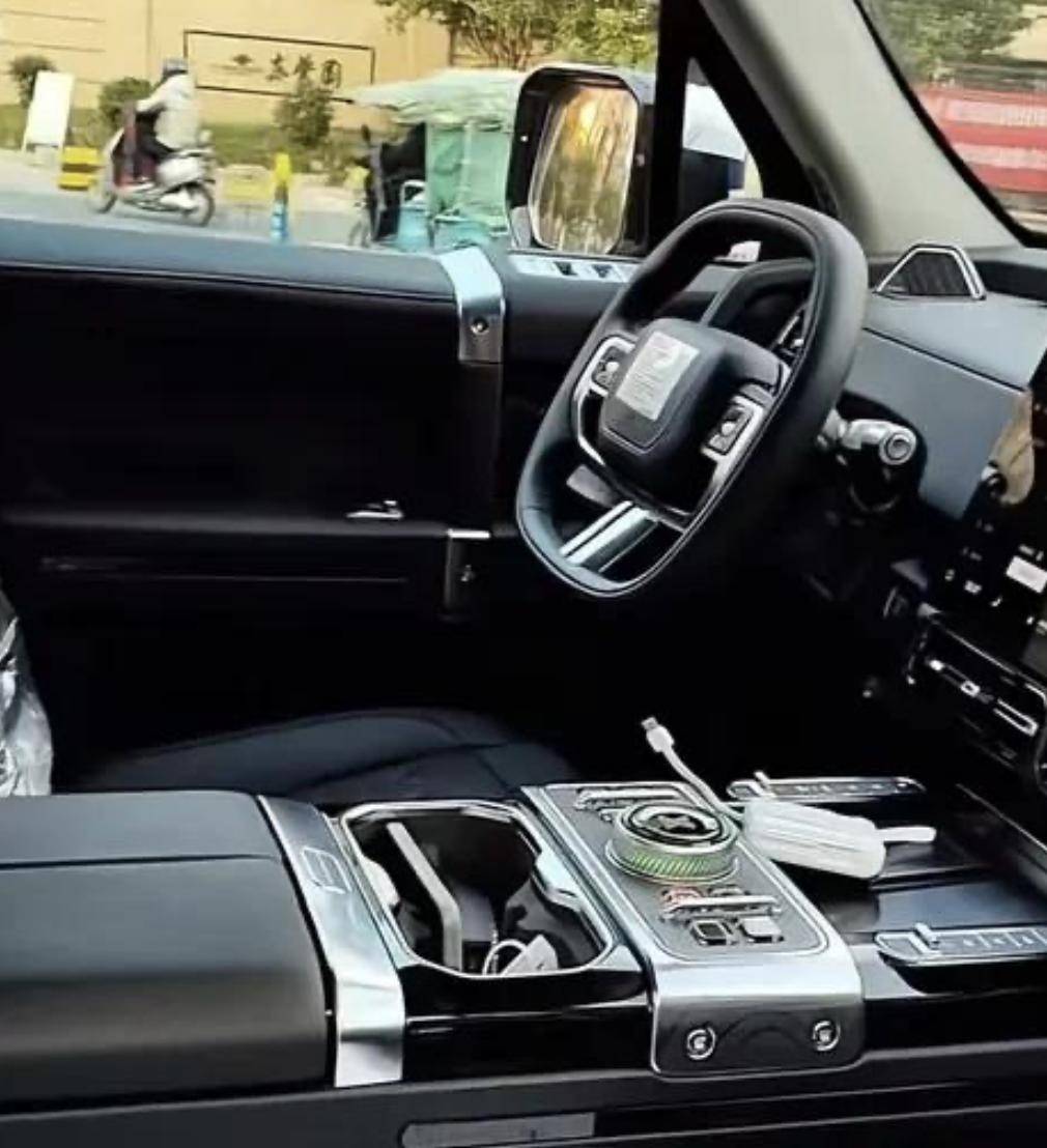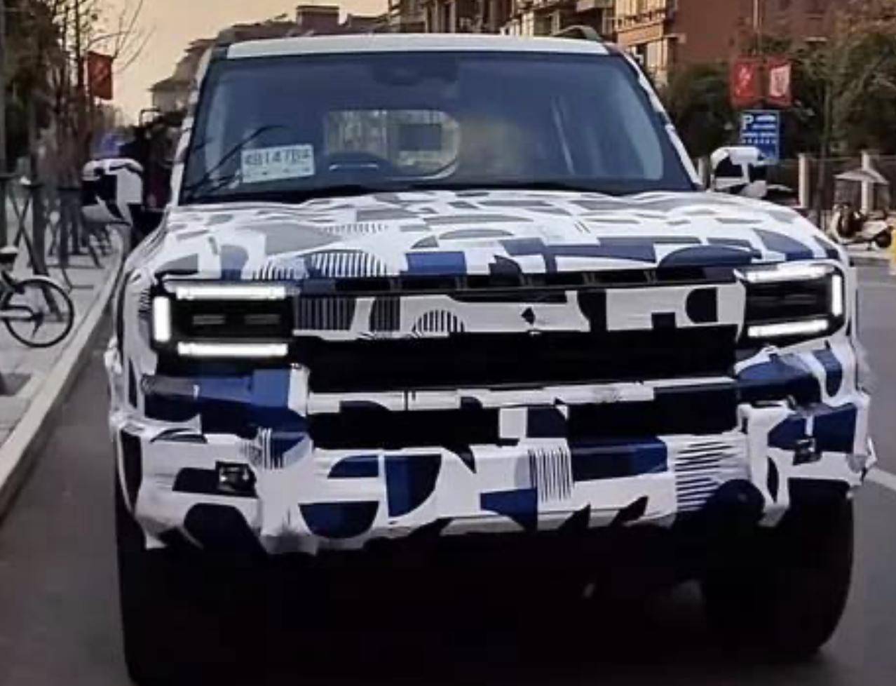 內飾部分,新車搭載雙輻式平底多功能方向盤,諜照上沒有看到儀表盤,配備了大尺寸懸浮式中控屏。中控下方的儀表臺上設計為橋鞍式造型,配有機械式旋鈕和按鍵,整體偏向“硬派越野”。
