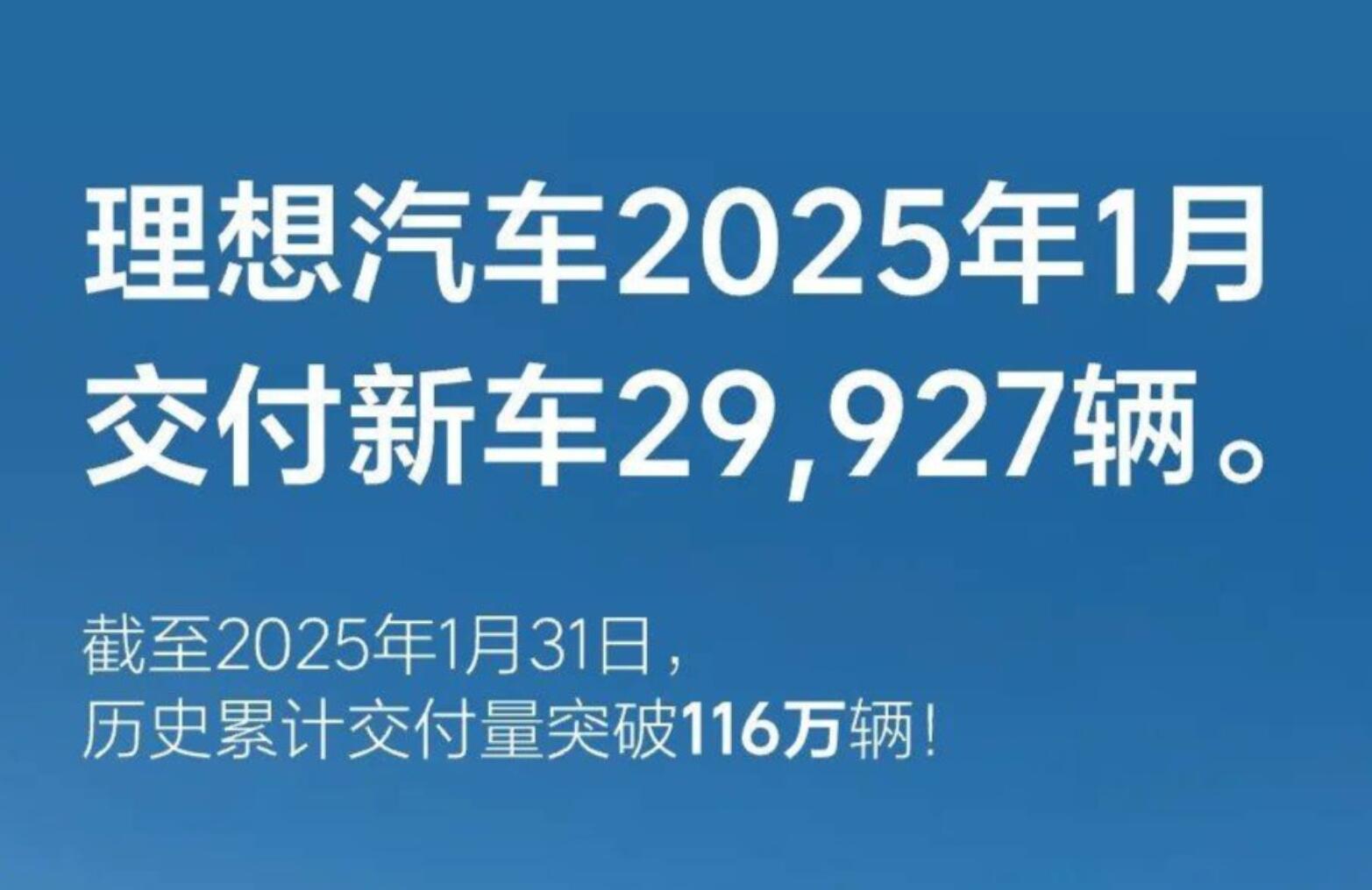 理想汽車:1月交付新車29927輛
