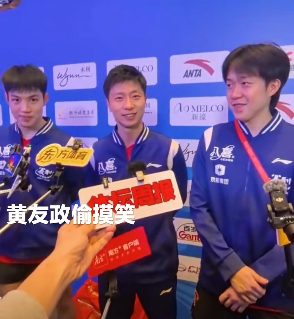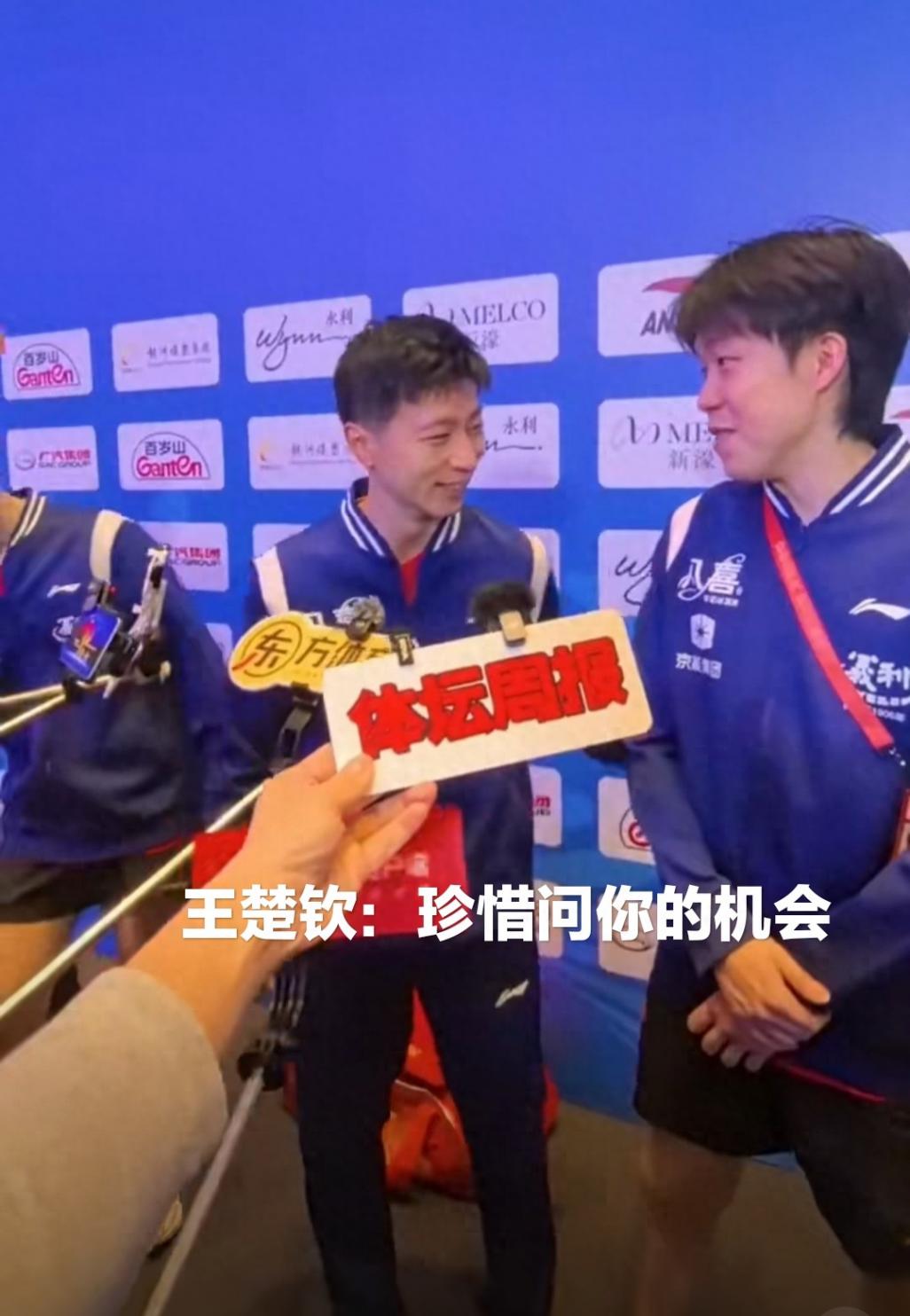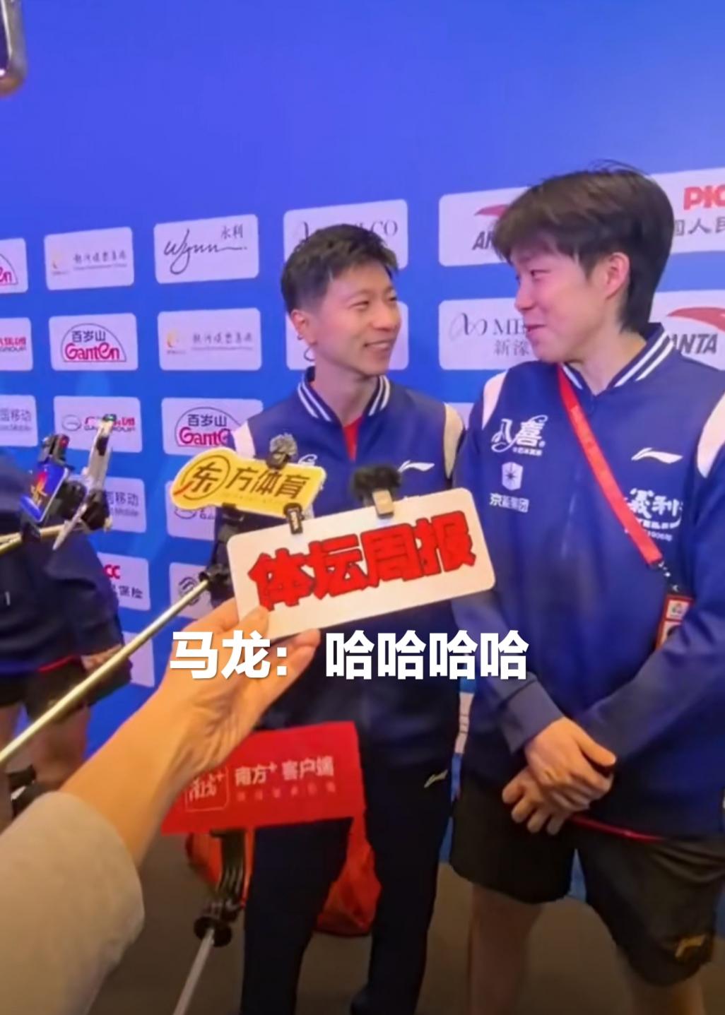 2025年11月14日全運會乒乓球男團小組賽北京隊以3-0擊敗河南隊后,王楚欽在接受采訪時笑著對身旁的馬龍打趣說:“龍哥,珍惜(記者)問你的機會啊!”。馬龍一邊笑一邊手拍打王楚欽屁股,兩人對視一笑。