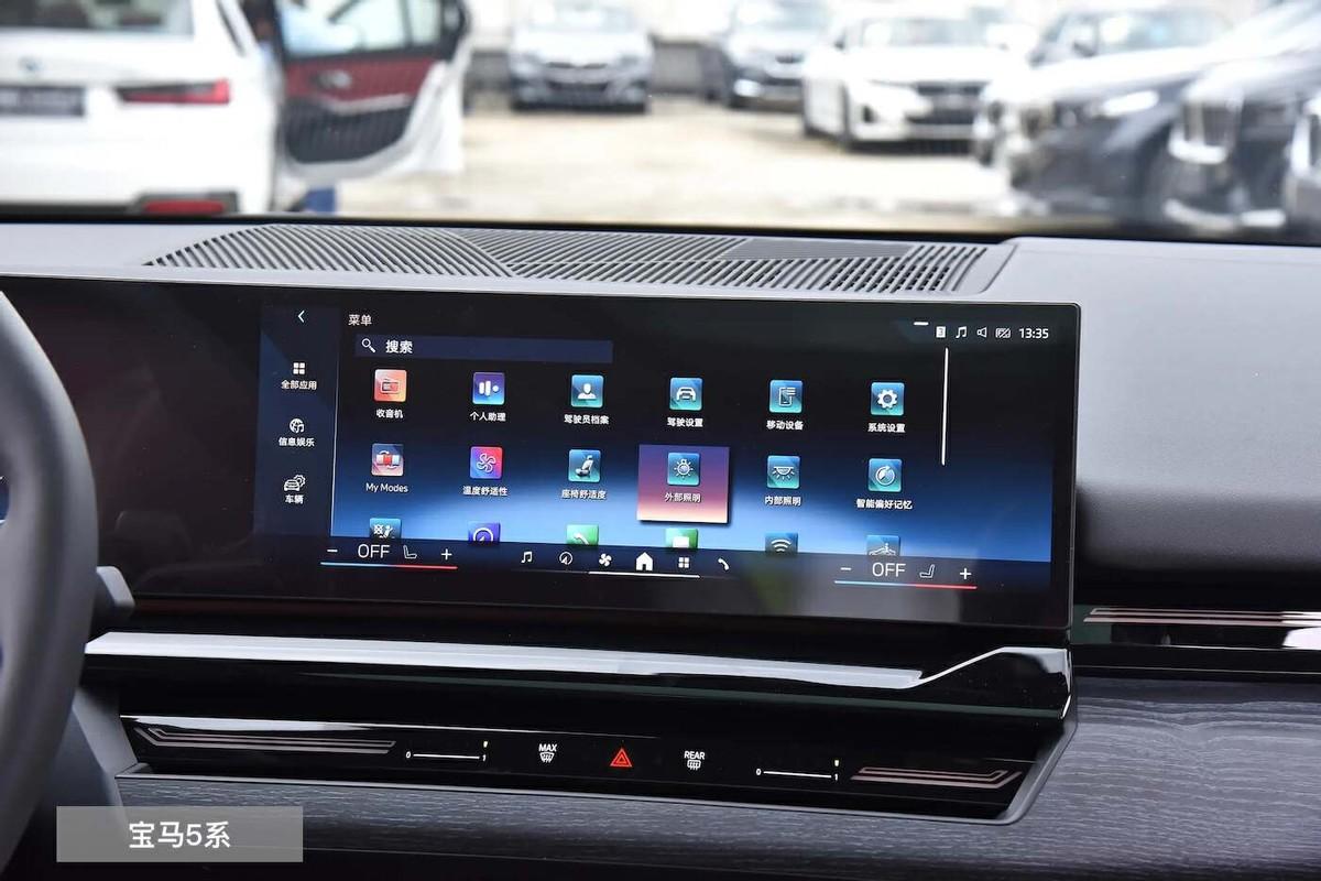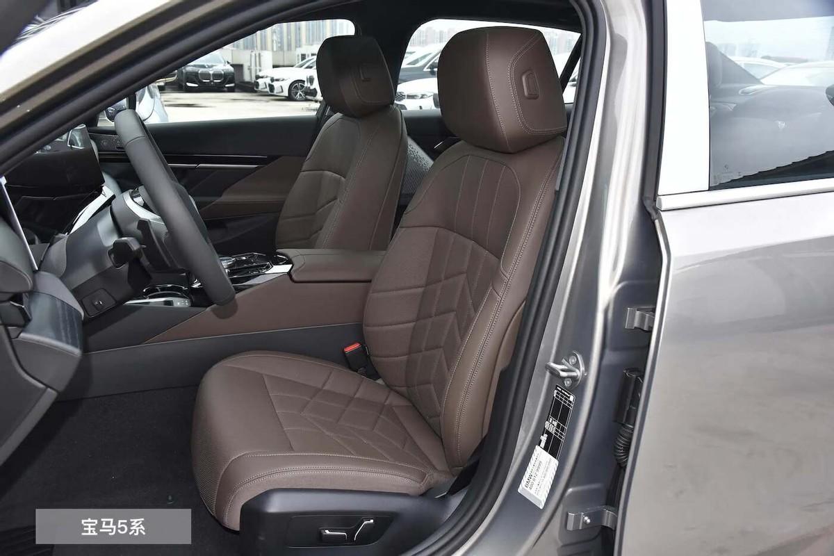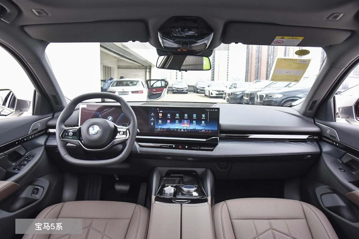 寶馬5系啟用了異形雙輻方向盤,并全部采用了撥片式電子換擋器,更簡明的中控立體層次與一體式設計的12.3+14.9英寸雙聯屏,都會讓這里看上去更年輕。而且從裝飾來看,這雖然是一臺入門版本,可黑桃木紋理飾板、烤漆面板,還有常觸區域軟包都沒有缺席,并通過中控、門板以及方向盤等觸控設計,提升了整體科技感。