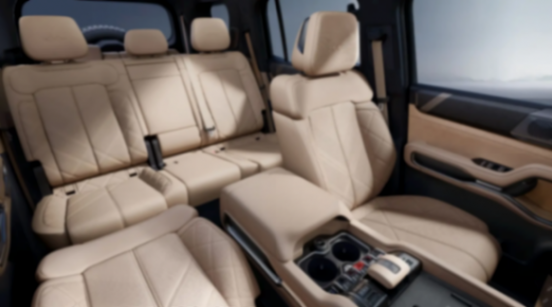 從設計上來看,豹8保持了越野車應有的那種厚重感,這不僅在于車輛保持了方盒子造型、采用了寬幅立體運動包圍,更在于車輛挺拔卻帶又修長感的視覺風格。5195/1994/1905mm的長寬高配有2920mm的軸距,盡管軸距在中大型SUV市場中并沒有什么優勢,但出眾的前后懸行程設計,卻能夠在一定程度上換來更出色的通過能力。