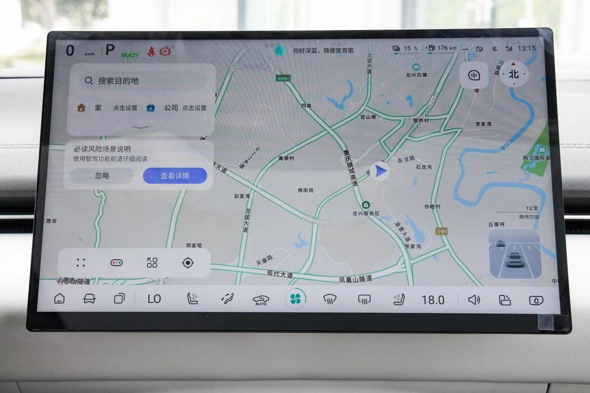智能座艙方面,深藍L07配備了高通驍龍8155車機芯片,功能方面,常規(guī)的在線導(dǎo)航、全場景語音車控等都具備,整體的流暢度表現(xiàn)也足夠絲滑,上手沒有什么難度。比較實用的地方是,深藍L07的語音助手還支持音區(qū)隔離功能,營造出專屬的主駕和副駕語音交互場景,在有孩子乘坐后排吵鬧的情況下,系統(tǒng)也可以準確識別語音指令,表現(xiàn)還不錯。