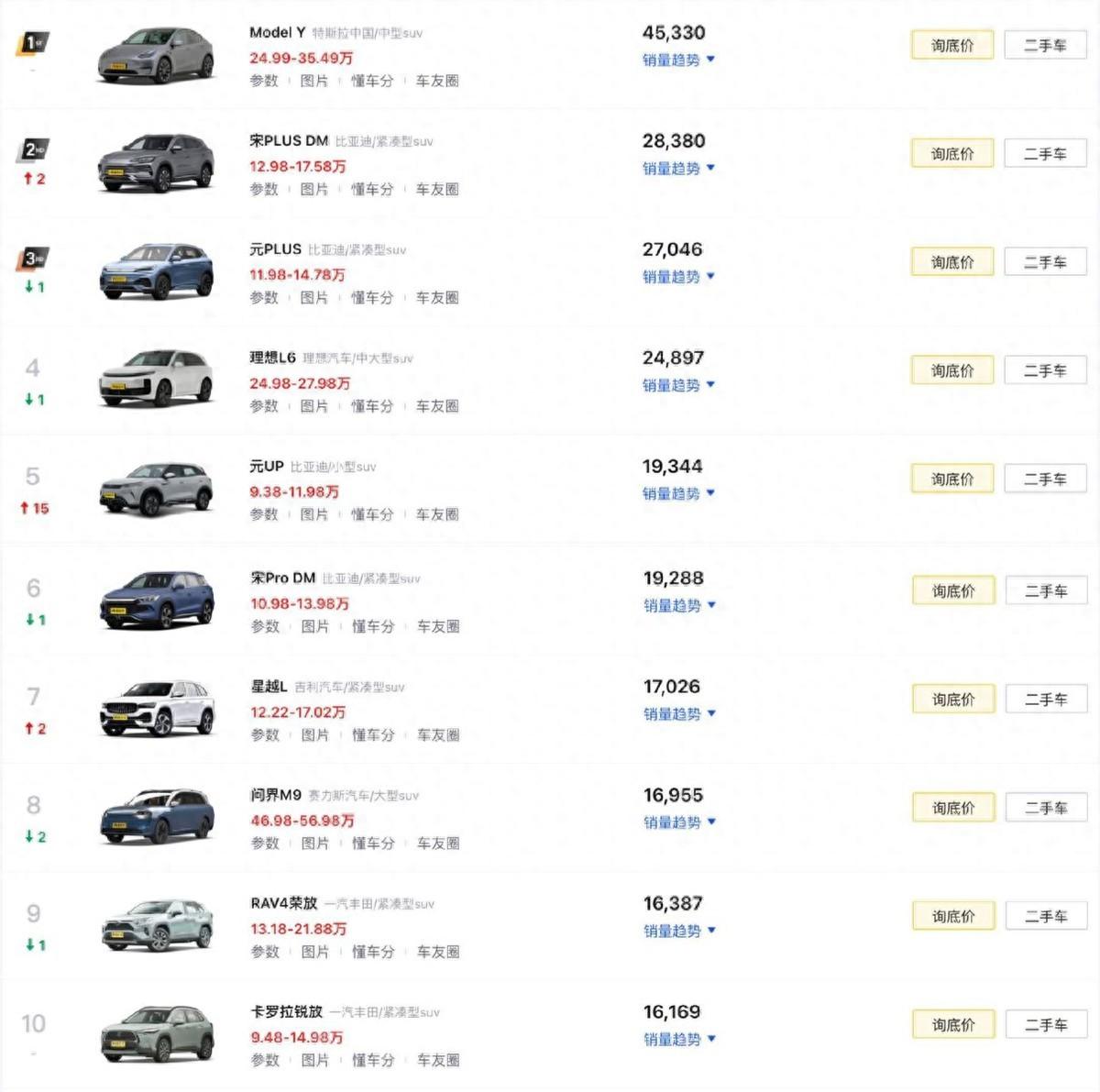 事實上,在TOP10的身后,還有大量諸如合資SUV、燃油SUV的存在,自主新能源足夠強勢,但并沒有想象中的那么有統治力,而合資品牌也的確在想辦法求生存。不過,可以看到的是,以比亞迪為代表的品牌的確實現了中低端市場的多點開花,統治力初現;而理想、問界等新勢力品牌也已經在高端市場站穩腳跟,誰又說得好哪天特斯拉Model Y的位置,會不會就被哪家新勢力給搶了過去呢?