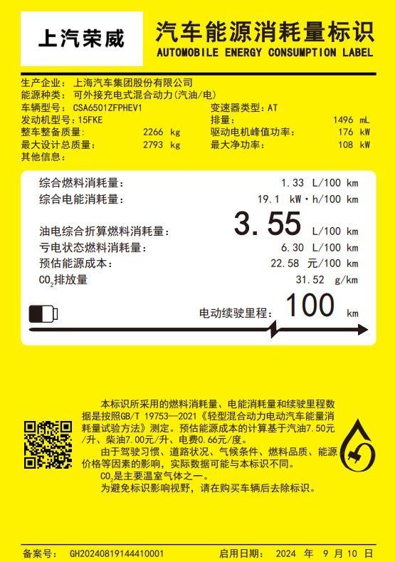 據(jù)工信部最新申報數(shù)據(jù)顯示,榮威iMAX8插電混動車型搭載型號為15FKE的1.5L發(fā)動機,發(fā)動機最大凈功率為108kw,驅(qū)動電機最大功率176kw,其在動力輸出方面要優(yōu)于傳祺E8插電混動車型,后者的發(fā)動機最大凈功率為103kw、電動機最大功率134kw。純電續(xù)航方面,榮威iMAX8插電混動車型可以達到100km,達到目前的主流水平,其綜合油耗為百公里1.33L,最低荷電狀態(tài)油耗為6.3L,略高于廣汽傳祺E8的5.7L,這與其尺寸較大有一定關(guān)系。