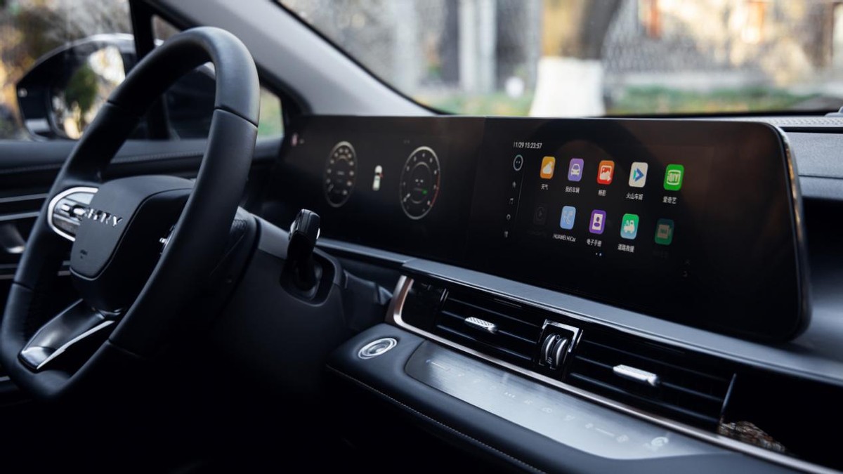 在內(nèi)飾設(shè)計方面,車型用料比較精致考究,運用了很多的鍍鉻裝飾、鋁飾面板和鋼琴烤漆面料,且揚聲器面罩也采用金屬材質(zhì),提升車內(nèi)的豪華質(zhì)感。除此之外,車內(nèi)還搭載了20.5英寸星云環(huán)繞屏、三輻平底式多功能方向盤、游艇式電子擋把和電子手剎。車內(nèi)還集成了Lion 5.0 AI車機系統(tǒng),支持HUAWEI HiCar+CarPlay手機互聯(lián)。