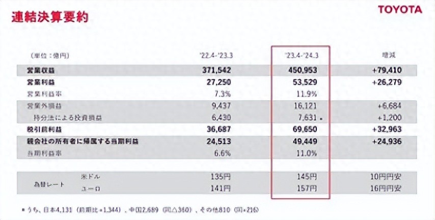 2023年,豐田全球銷量達到了1049萬輛,穩坐全球銷量冠軍寶座,排在其后的則是大眾、以及如日中天的特斯拉等強勁對手。而在中國市場,豐田2023年銷量接近180萬輛,同樣穩居外資品牌前列。2023財年,豐田的凈利潤為約 2.8萬億日元(約合 200億美元),這個數字在全球汽車行業都是領先的。