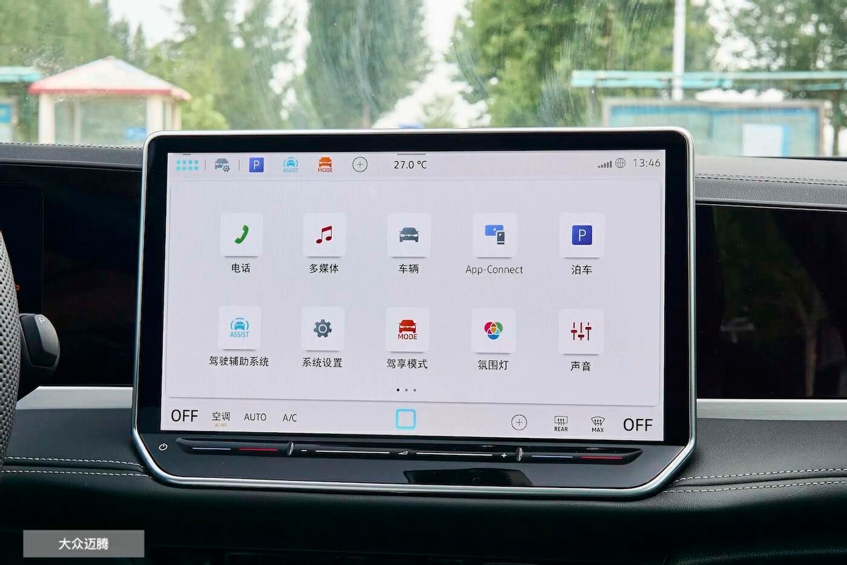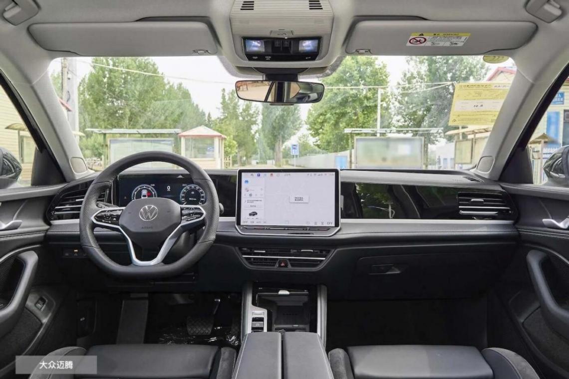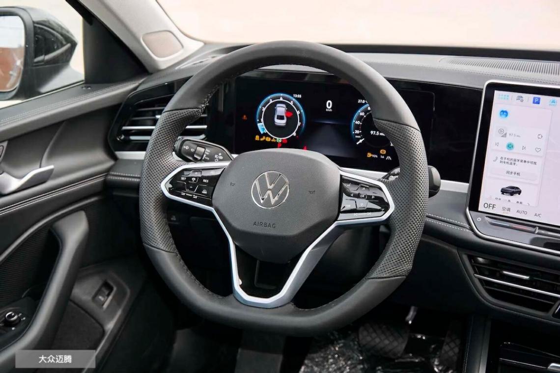 邁騰在內飾中則啟用了更寬泛的烤漆裝飾材料,10.25+12.9英寸雙液晶屏之外,則增加了更多軟包上的打孔工藝來提升檔次感,同時,方向盤后的電子旋鈕式換擋,還有多媒體、空調、燈光等區域的數字觸控,也優化車輛的交互控制便捷性,智能程度更高、軟包面積更大。