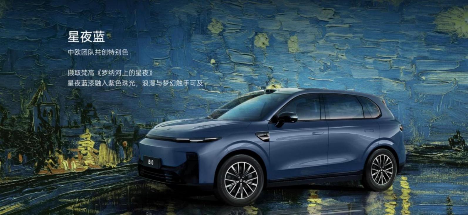 車身配色方面上,零跑B10分別提供了曦露紫、苔原灰、光白、星河銀、金屬黑以及由中歐團隊共同打造的星夜藍共計六種車身配色,以供不同審美的消費者選擇。值得一提的是,星夜藍這一配色還加入了紫色珠光,并且整個設計靈感也源自梵高的《羅那河上的星夜》這一著作,呈現出了其獨有的浪漫與夢幻藝術美感。