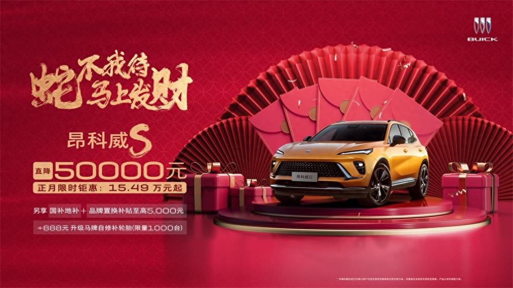 蛇年新春將至,上汽通用汽車別克品牌宣布:即日起至2月27日,購買別克昂科威S享“正月限時鉅惠”15.49萬元起,以好看、好開、好用的產品實力和越級的品價比降維打擊,打造“15萬級最強SUV”。同時,線上下定昂科威S可享以888元選裝價值2000元的“馬上發財”套件:全車“升級”馬牌UltraContact UC6自修補輪胎,限量1000套,助力消費者在蛇年財源廣進。此外,1月31日(含)前下定昂科威S還可享受別克品牌推出的“國補地補全兜底”安心購車禮,并可疊加至高5,000元的品牌置換補貼。值得一提的是,1月10日-12日在別克天貓旗艦店下訂購買昂科威S,還可享受99元抵1,000元的“膨脹金”福利,為消費者提供誠意十足的多重購車鉅惠禮遇。